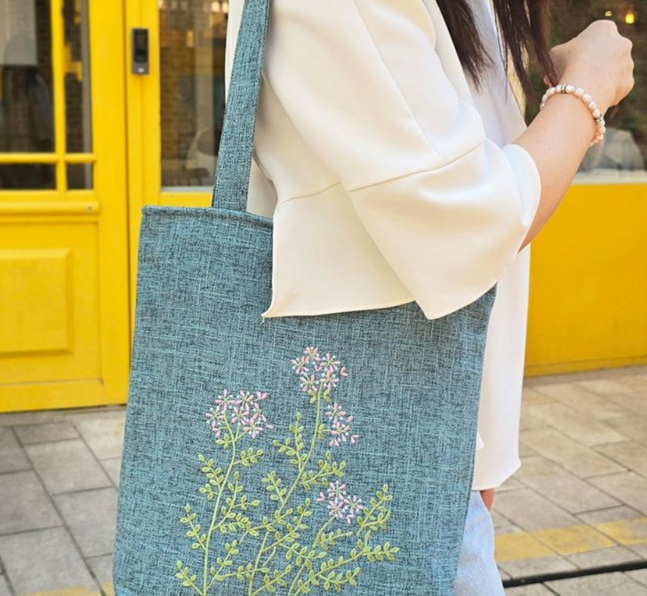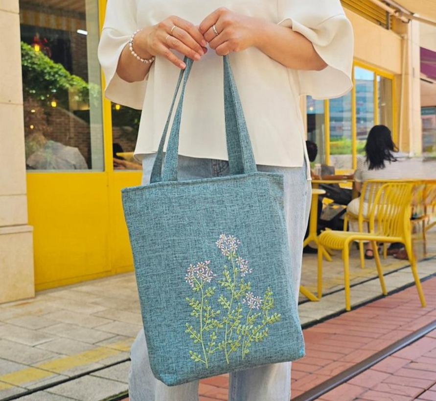 너무 평범한 에코백은 싫고, 그렇다고 과한 디자인도 부담스럽다면 라벤더 자수 에코백이 좋은 선택이 될 수 있어요.